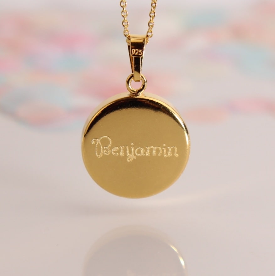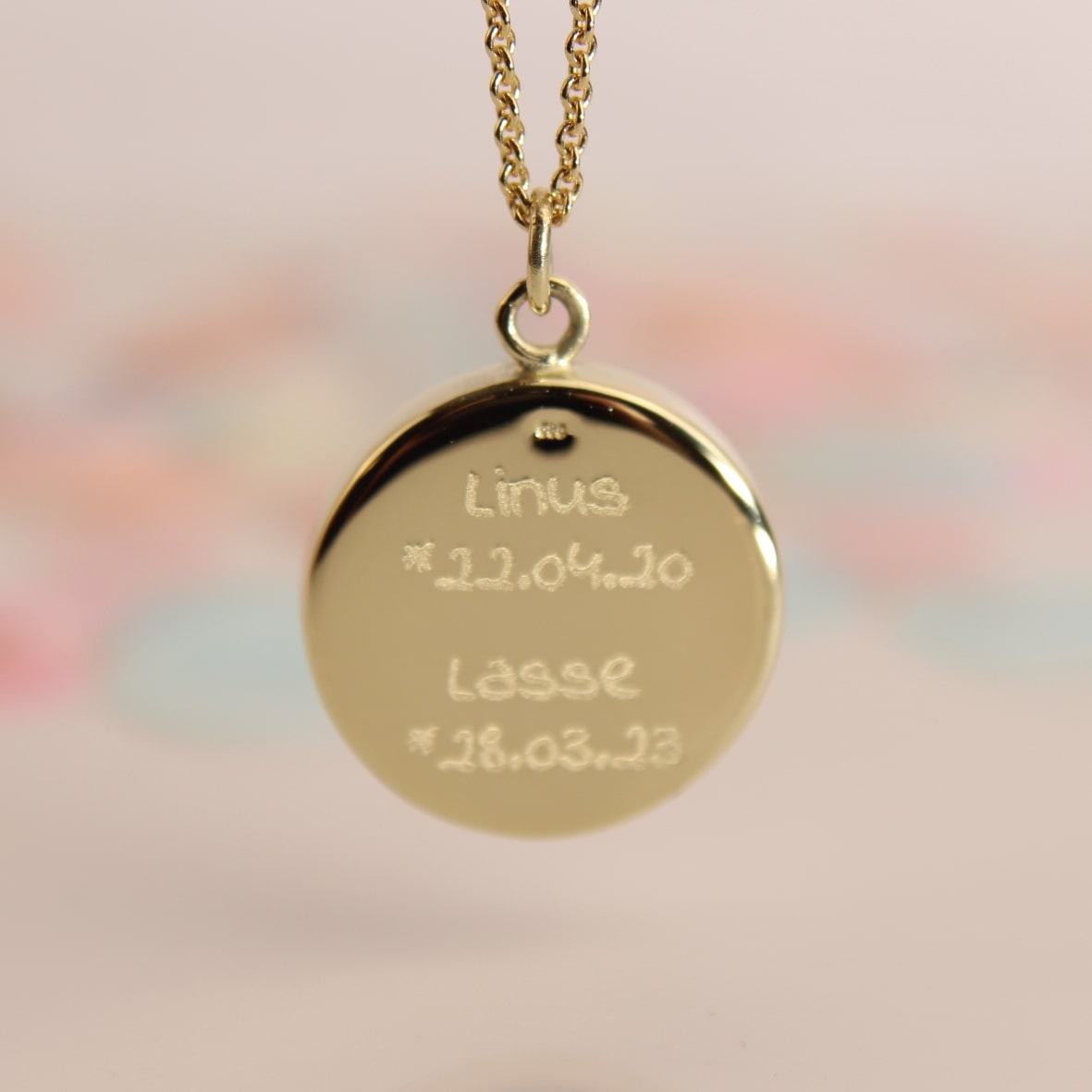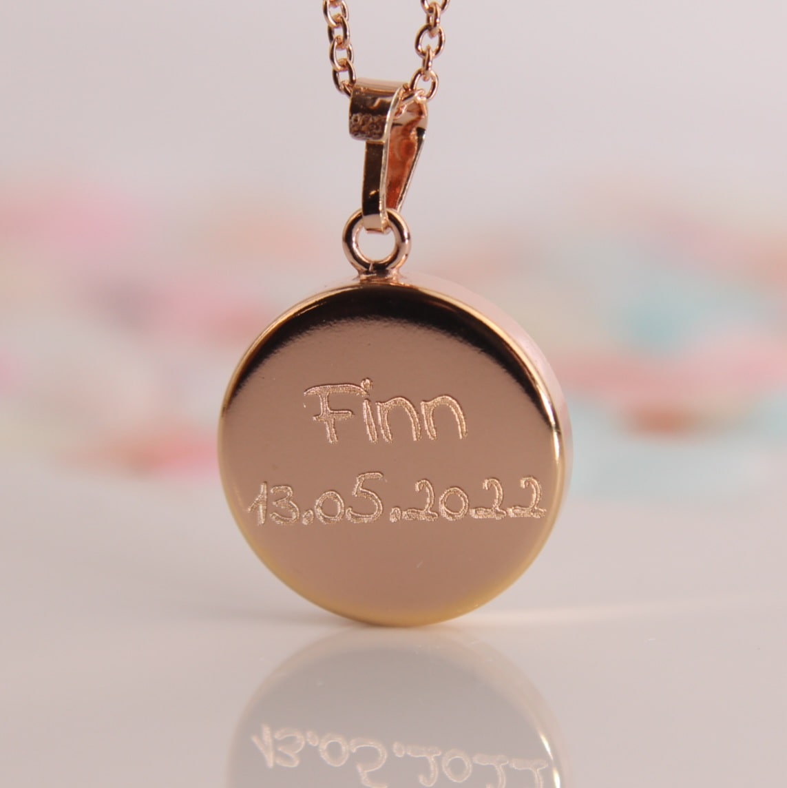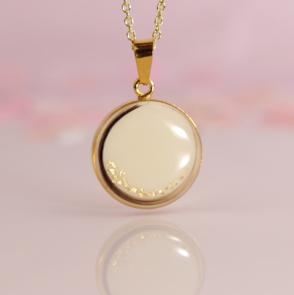 18mm, Haar, Nabel, Inschrift, Blattmetall, Perlschimmer