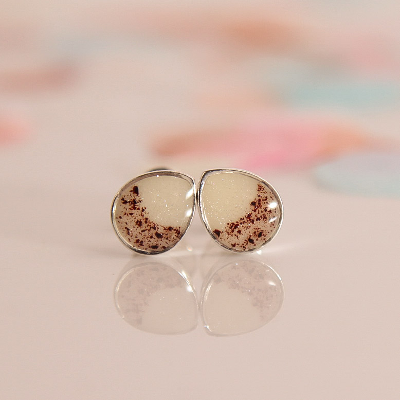 Die Ohrringe Glücksträne lassen sich außer mit Muttermilch auch mit Haarsträhnen, Nabelschnur oder Asche gestalten. Du kannst mir deine Gestaltungswünsche in die Bestellnotiz schreiben. Ich gebe mein bestes deinen Wunsch umzusetzen. Die Fläche ist allerdings nicht sehr groß. Das solltest du bei deinen Wünschen berücksichtigen. Nur feine Haarsträhnchen oder einfache Designs sind möglich. Desweiteren sind Blüten, Blattmetalle oder Glitzer eine tolle Möglichkeit deinen Ohrschmuck noch individueller zu gestalten.