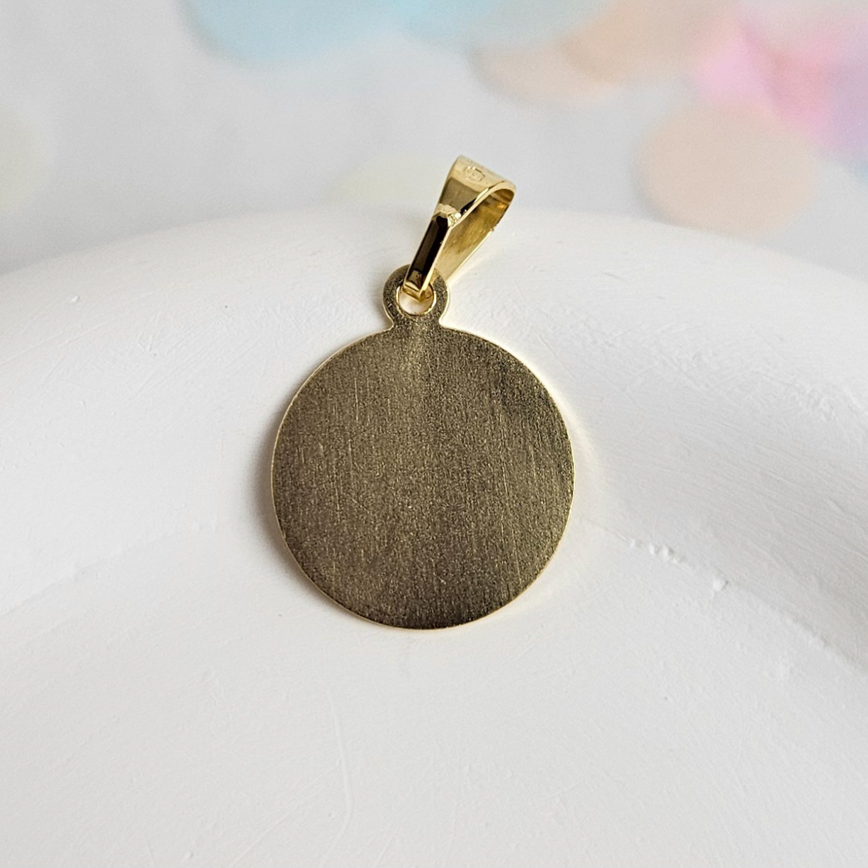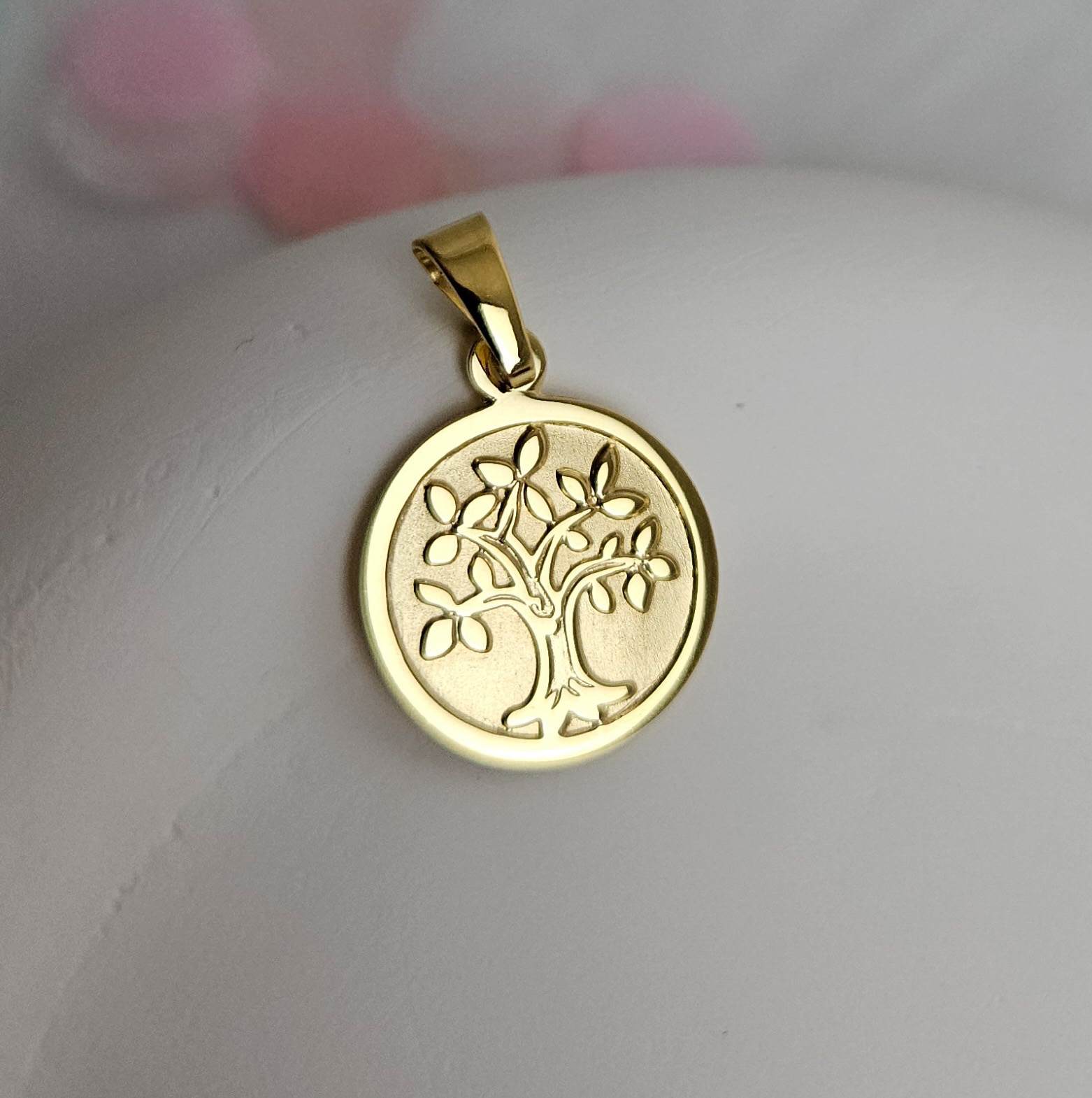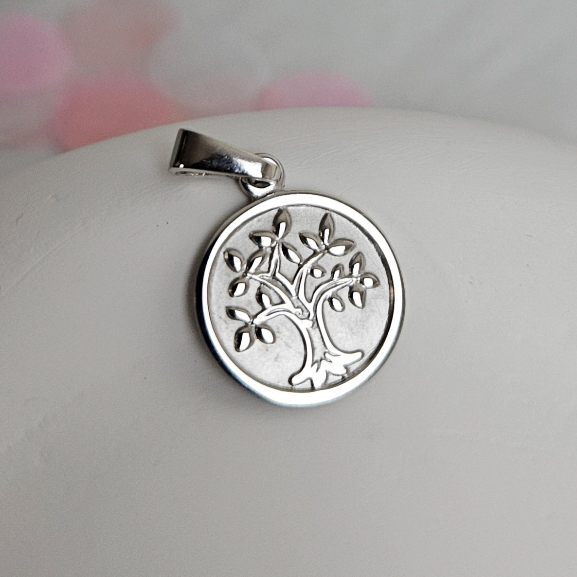 Der schöne Anhänger “Lebensbäumchen” kann auf der Rückseite eine persönliche Gestaltung erhalten und zeigt auf der Vorderseite einen kleinen Baum. Der Anhänger hat einen Durchmesser von 12mm und ist auf der Rückseite leicht mattiert.