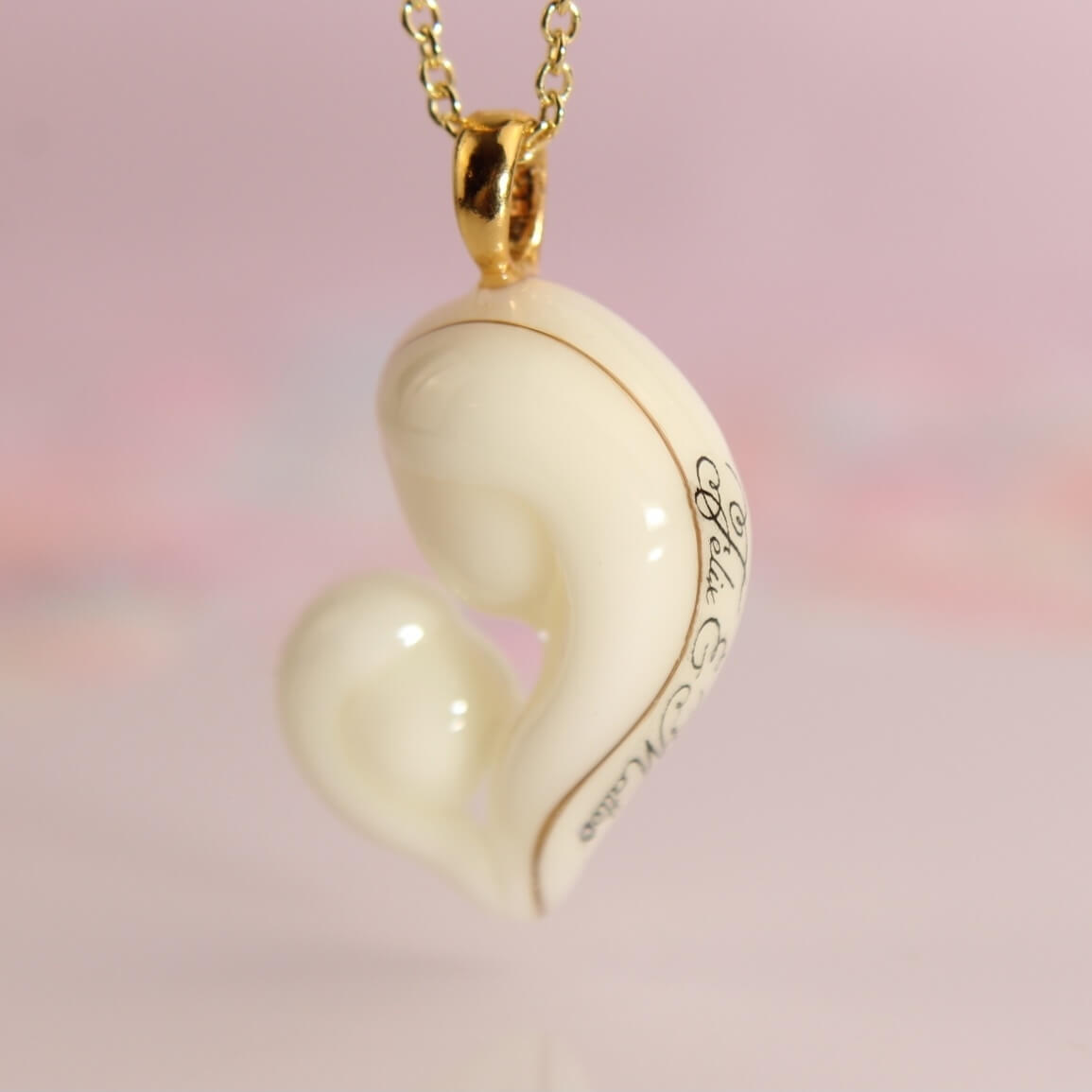 Der schöne Anhänger Mutterliebe stellt symbolisch die enge Bindung zwischen Mutter und Kind dar. Der Anhänger deutet den Kopf der Mama und den des Kindes an, vereint in einer Herzform.